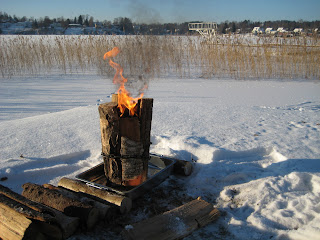 Nästa pryttel var ett Primus Eta Express jag köpte på rea. Det som folk mest klagar på är den idiotiska lösningen med piezotändaren, som hamnar innanför vindskyddet och därför är svår att komma åt. Jag löste det genom att sätta på skyddet efter jag tänt. Det tog inte många minuter att koka vattnet, så det funkar ju :)